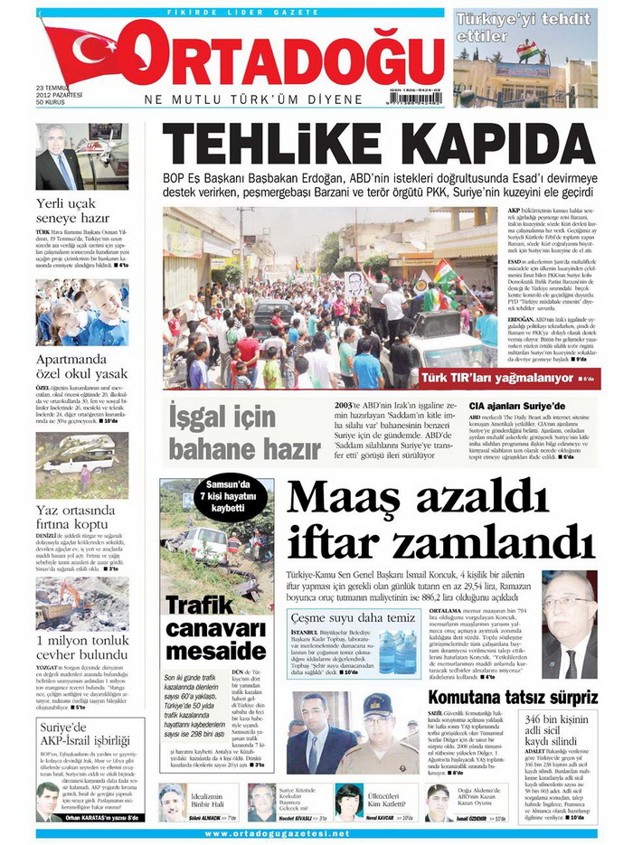 Gazete Manşetleri - 23 Temmuz 2012