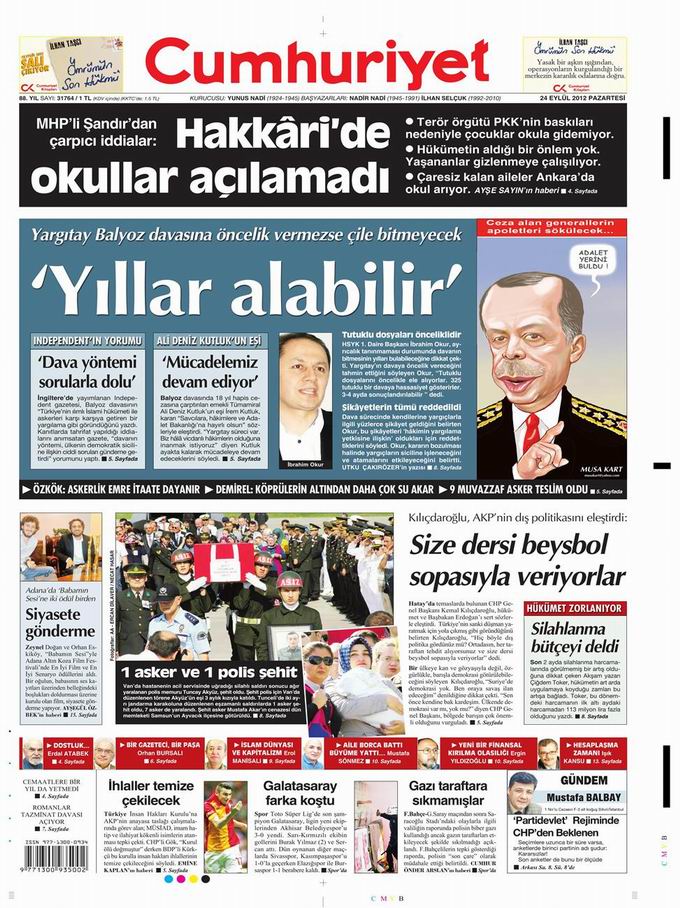 Gazete Manşetleri - 24 Eylül Pazartesi