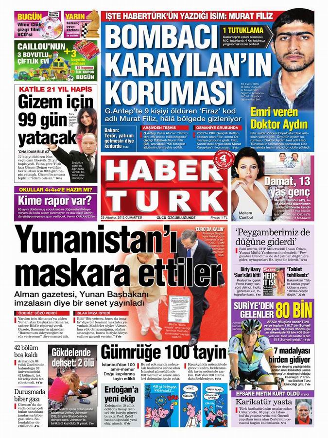 Gazete Manşetleri - 25 Ağustos Cumartesi
