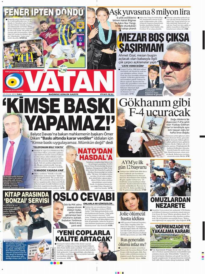 Gazete Manşetleri - 25 Eylül Salı