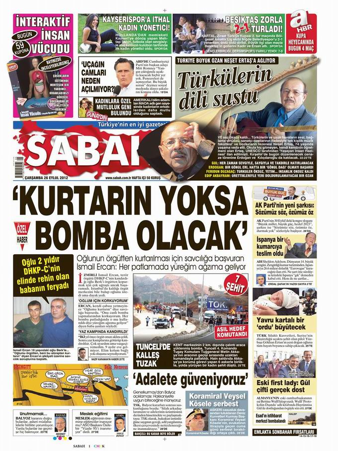 Gazete Manşetleri - 26 Eylül Çarşamba