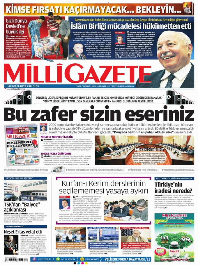 Gazete Manşetleri - 26 Eylül Çarşamba