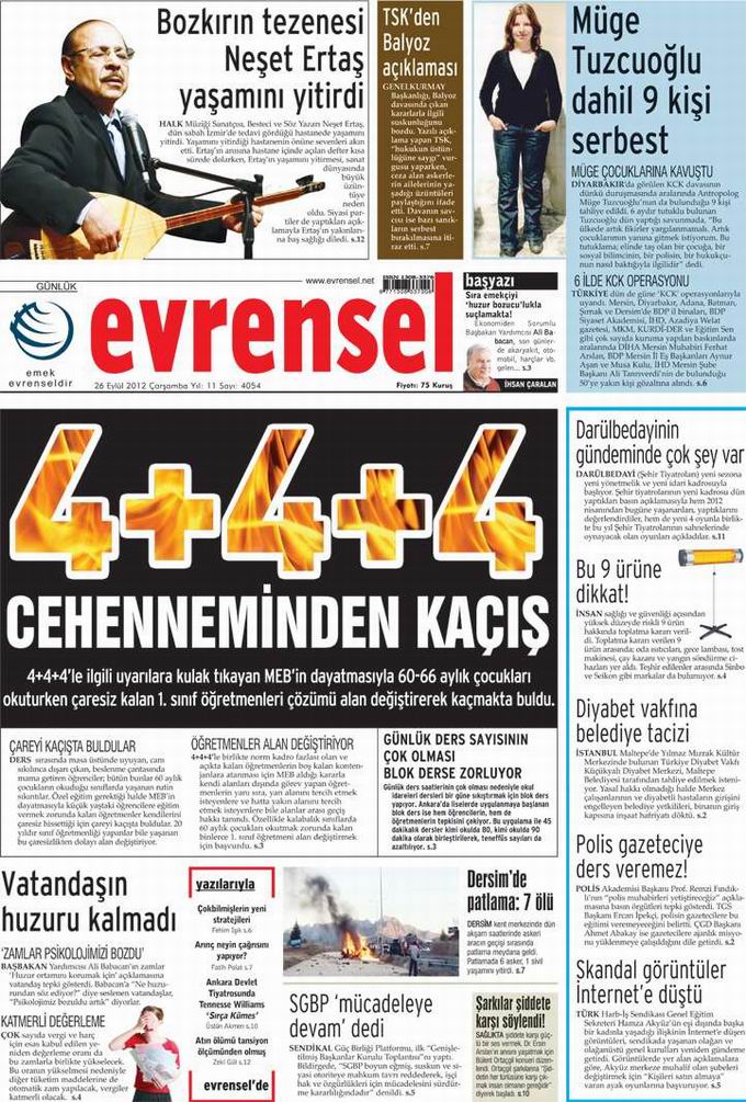 Gazete Manşetleri - 26 Eylül Çarşamba