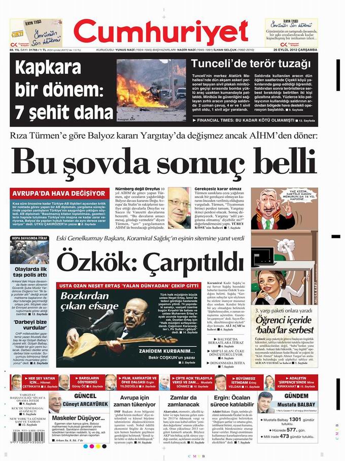 Gazete Manşetleri - 26 Eylül Çarşamba