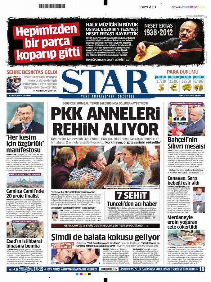 Gazete Manşetleri - 26 Eylül Çarşamba