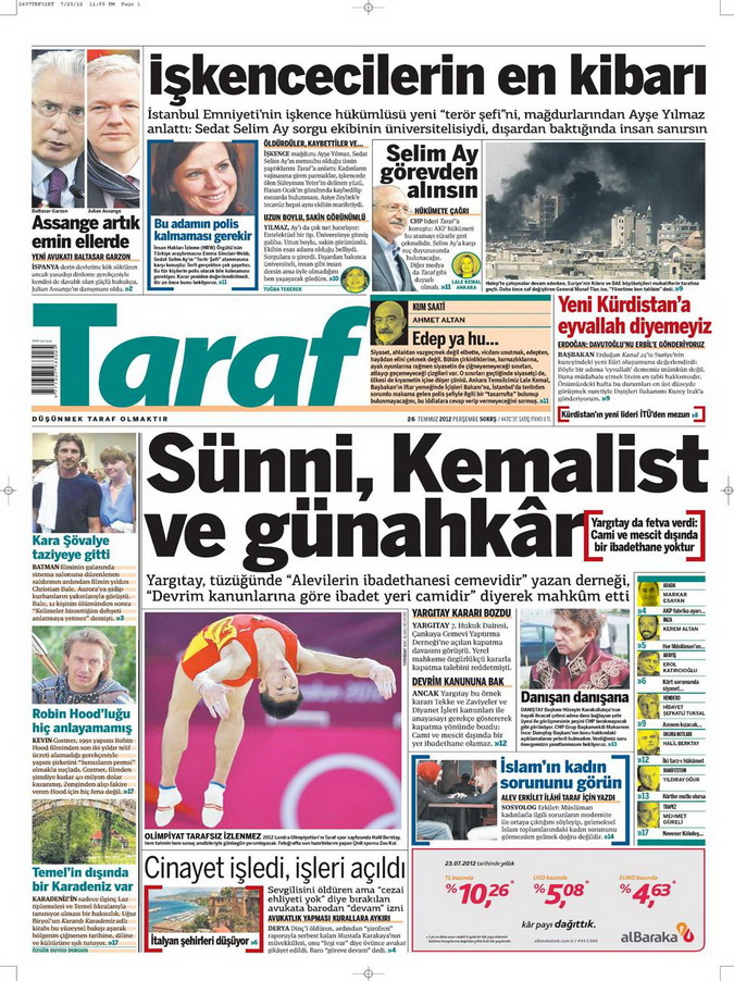 Gazete Manşetleri - 26 Temmuz 2012