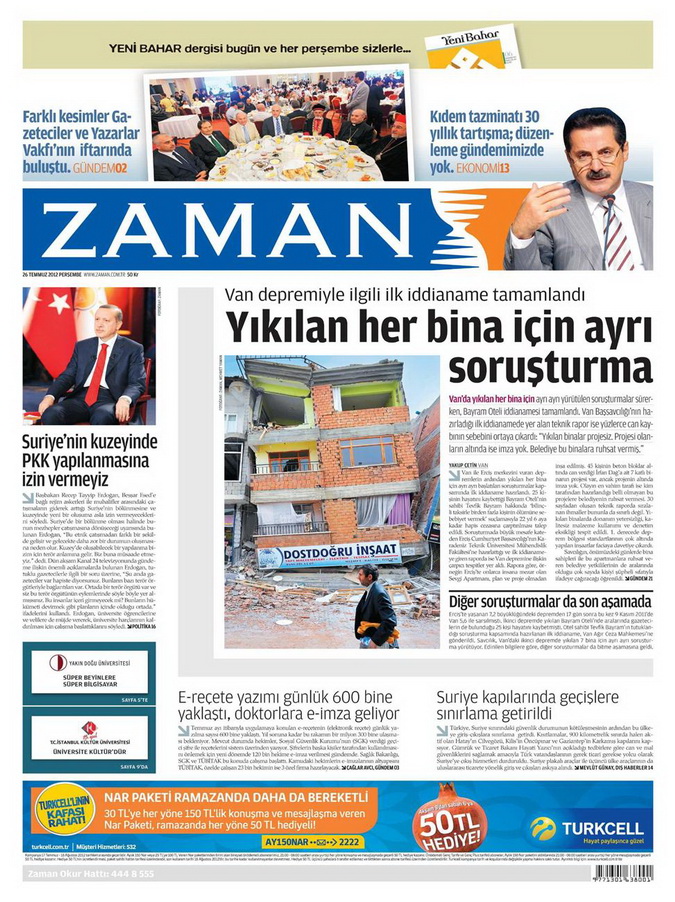 Gazete Manşetleri - 26 Temmuz 2012