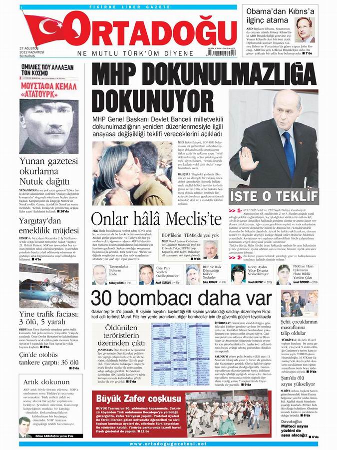 Gazete Manşetleri - 27 Ağustos Pazartesi