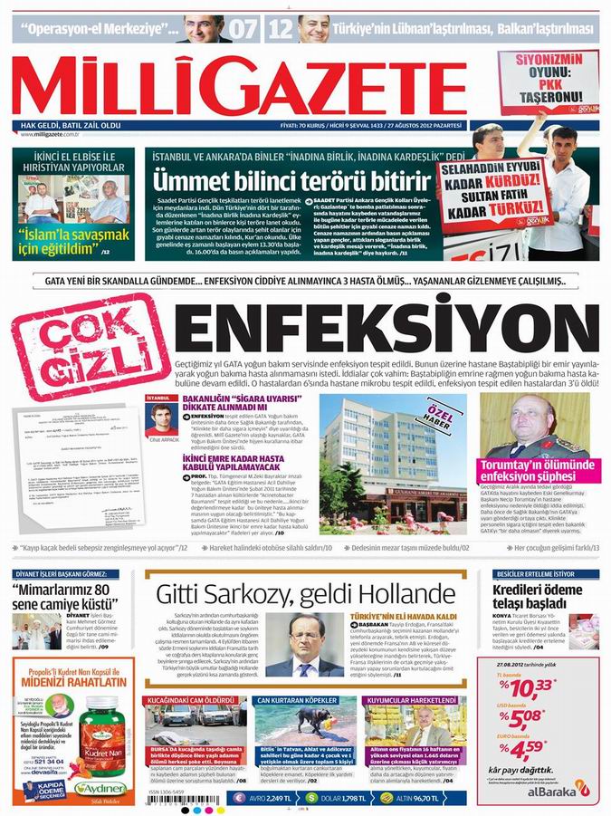 Gazete Manşetleri - 27 Ağustos Pazartesi