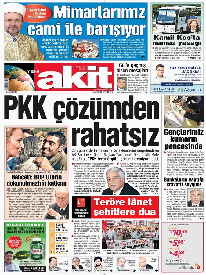Gazete Manşetleri - 27 Ağustos Pazartesi