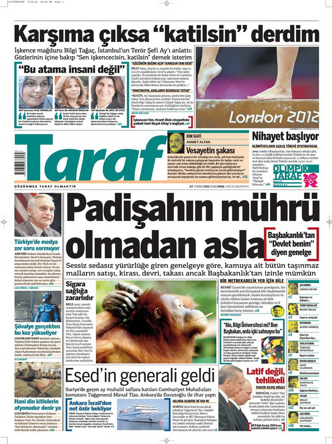 Gazete Manşetleri - 27 Temmuz 2012