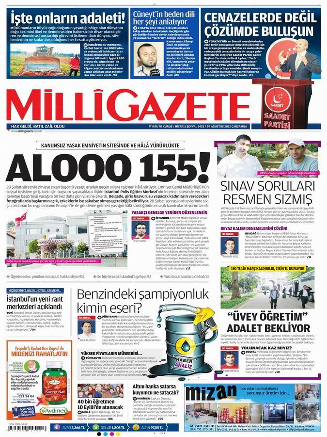 Gazete Manşetleri - 29 Ağustos Çarşamba