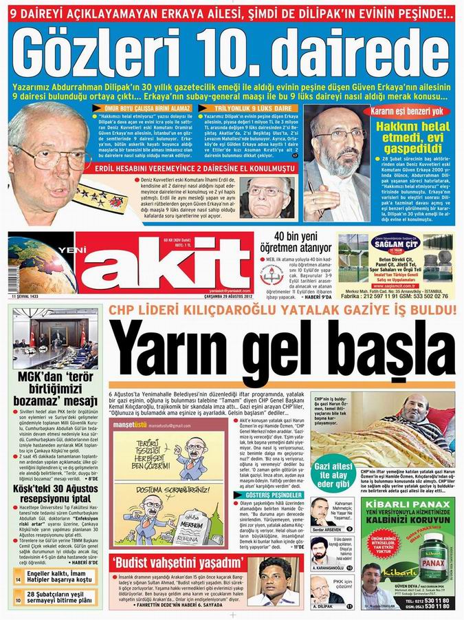 Gazete Manşetleri - 29 Ağustos Çarşamba