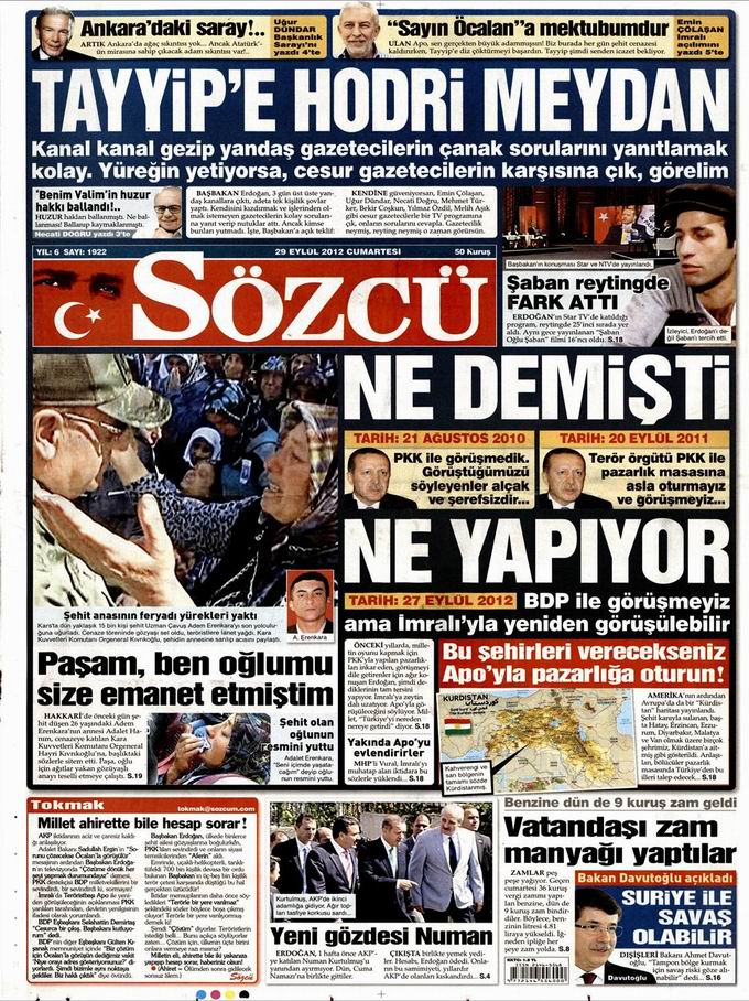 Gazete Manşetleri - 29 Eylül Cumartesi