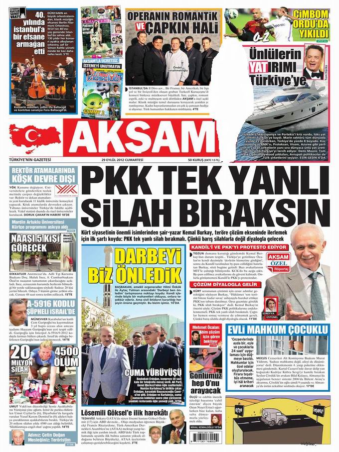 Gazete Manşetleri - 29 Eylül Cumartesi