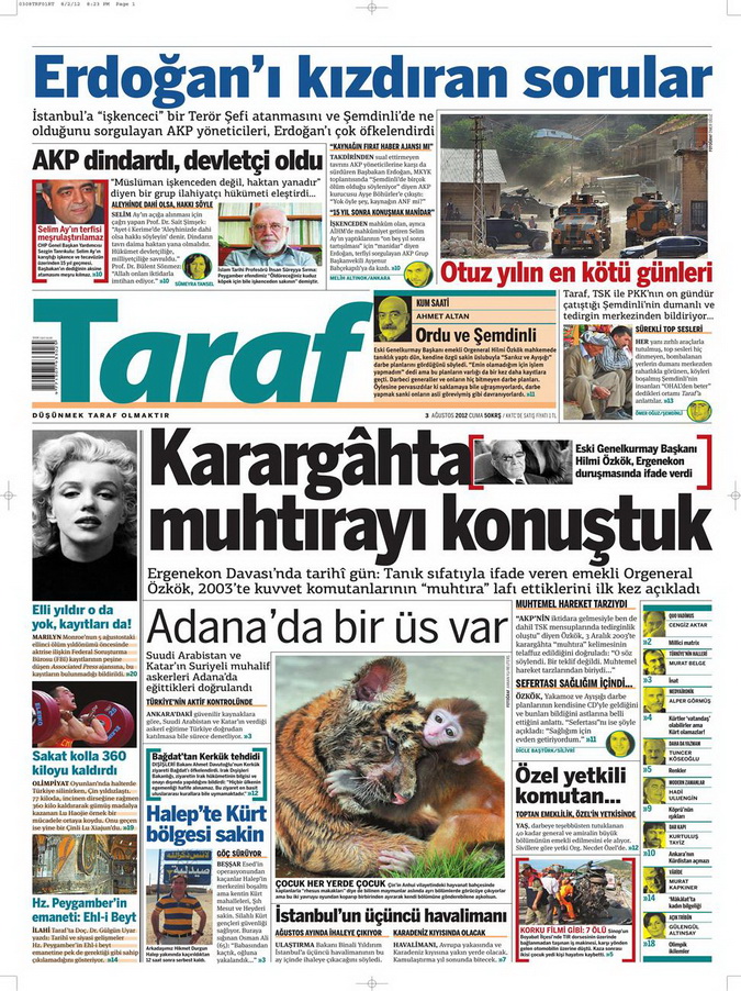 Gazete Manşetleri - 3 Ağustos 2012