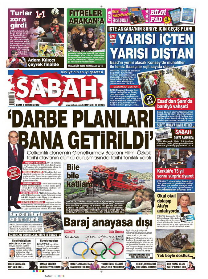 Gazete Manşetleri - 3 Ağustos 2012
