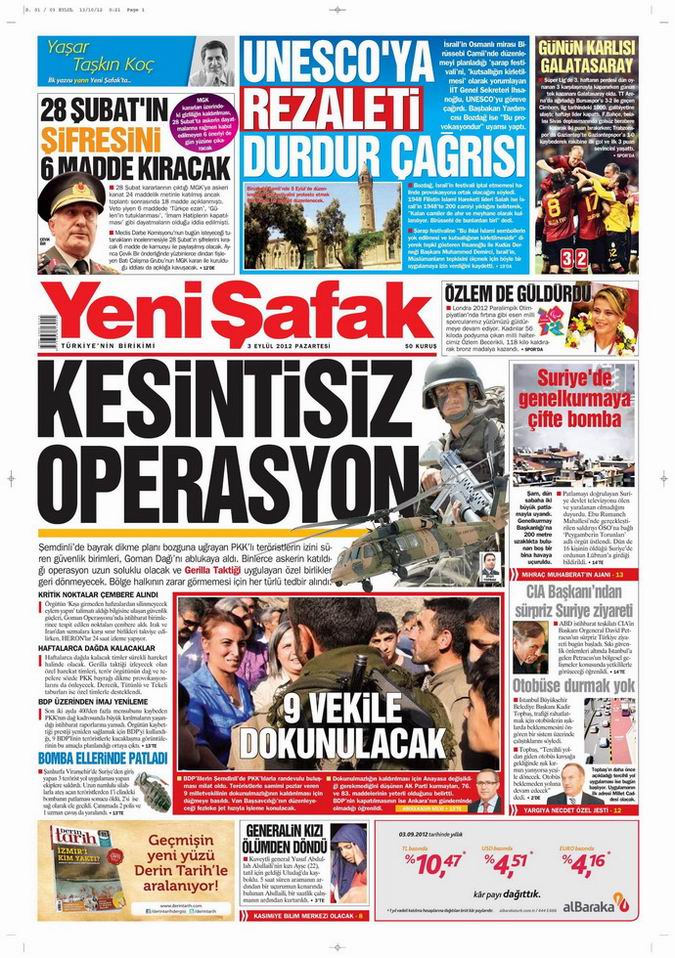 Gazete Manşetleri - 3 Eylül Pazartesi