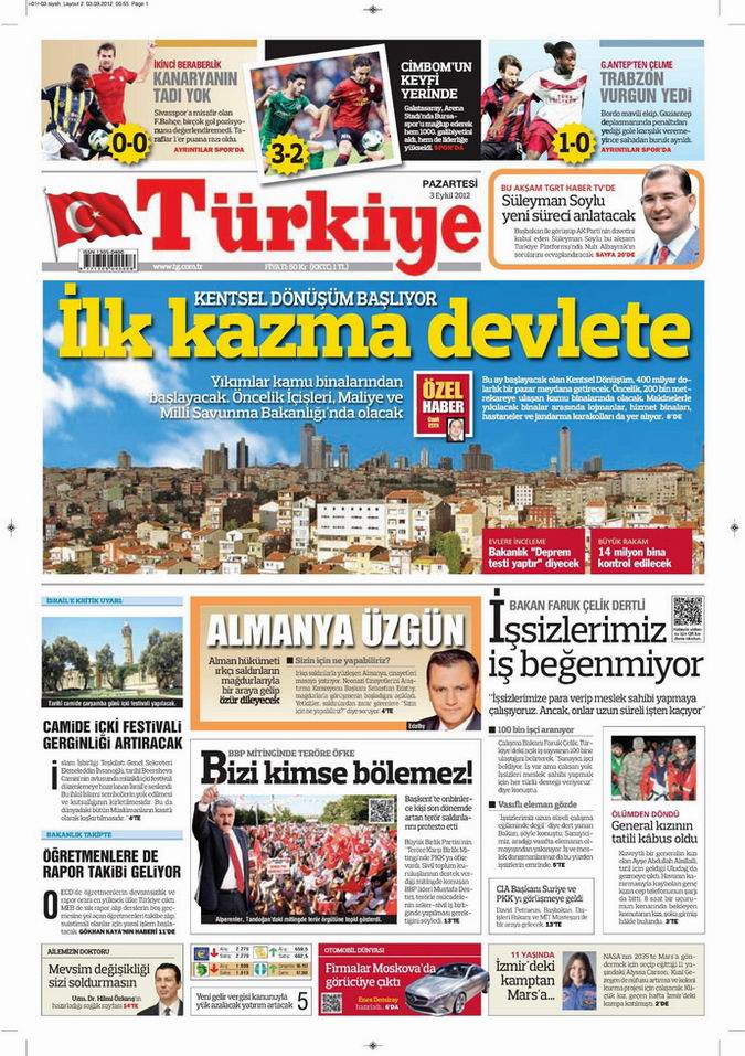 Gazete Manşetleri - 3 Eylül Pazartesi