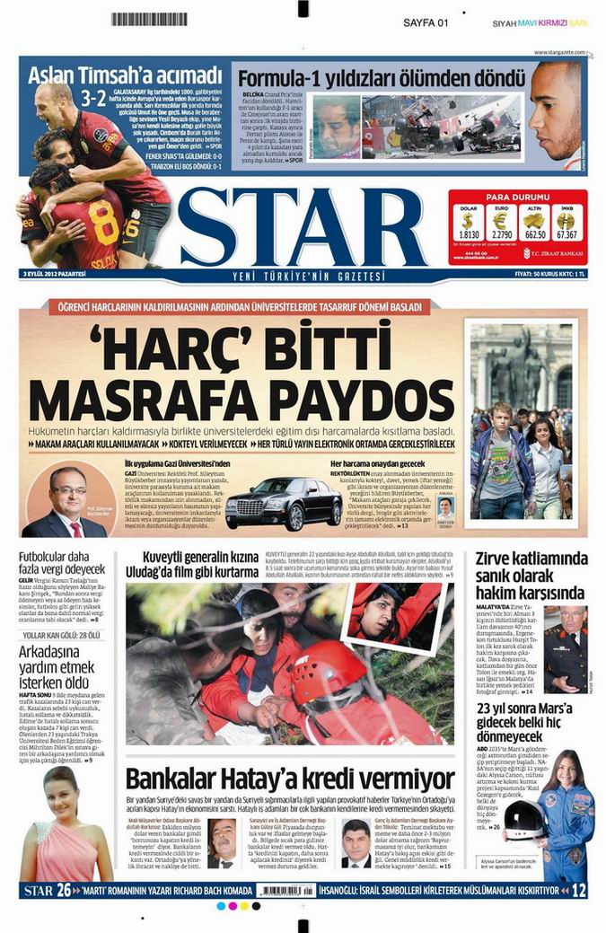 Gazete Manşetleri - 3 Eylül Pazartesi