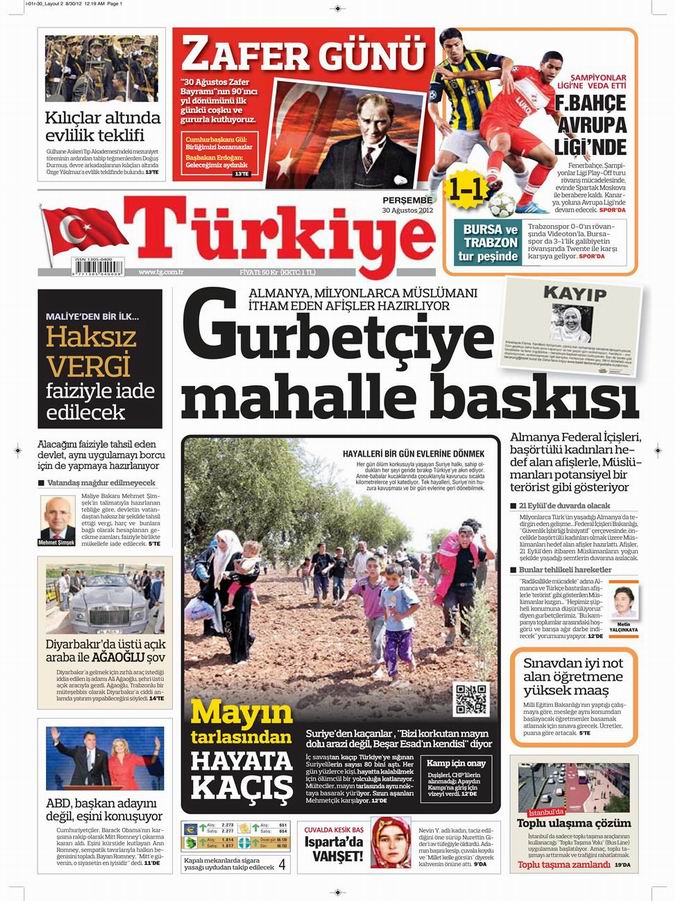 Gazete Manşetleri - 30 Ağustos Perşembe