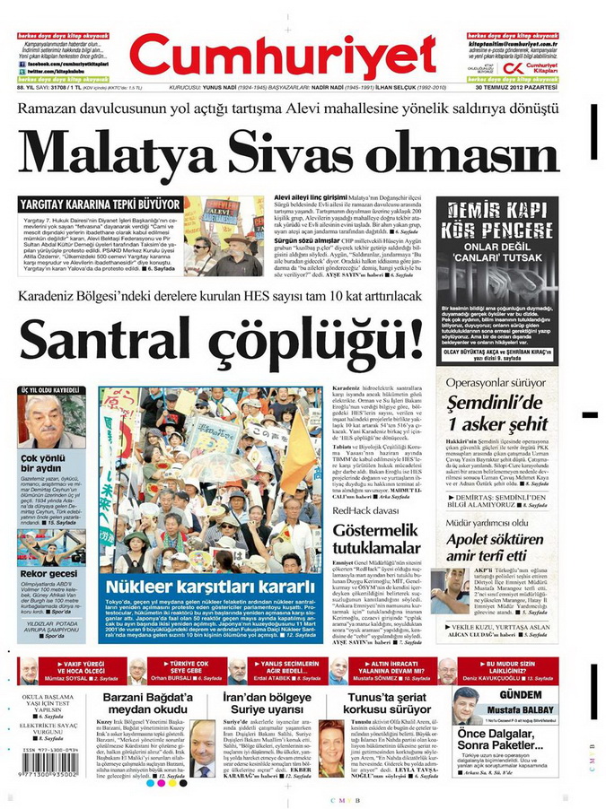 Gazete Manşetleri - 30 Temmuz 2012