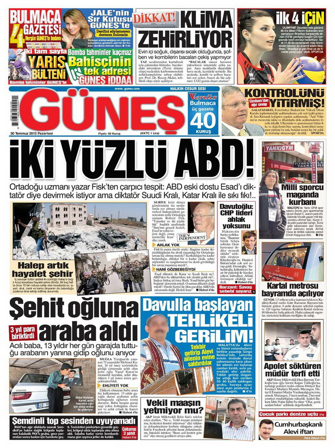 Gazete Manşetleri - 30 Temmuz 2012