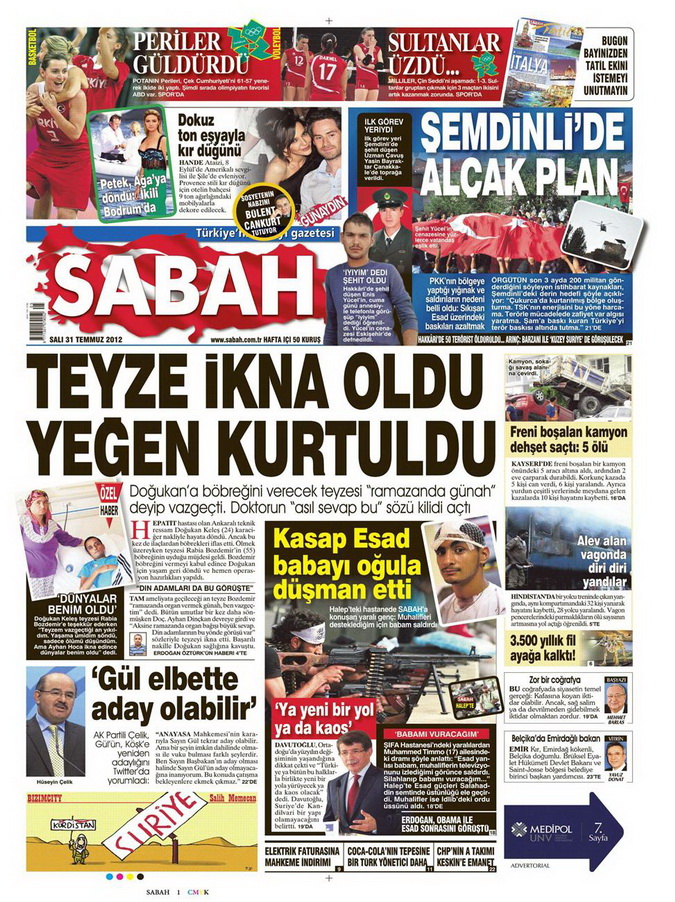 Gazete Manşetleri - 31 Temmuz 2012