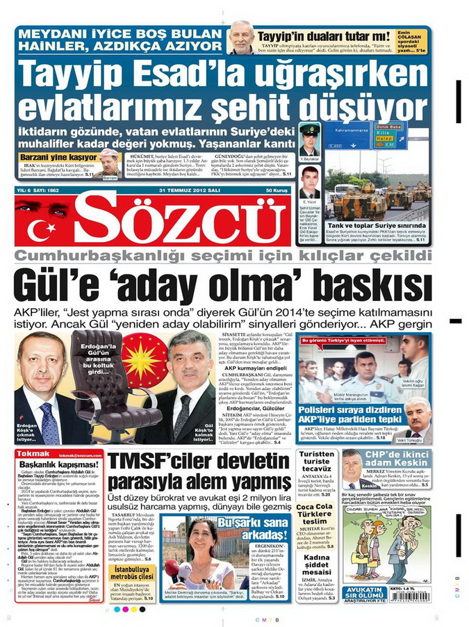 Gazete Manşetleri - 31 Temmuz 2012