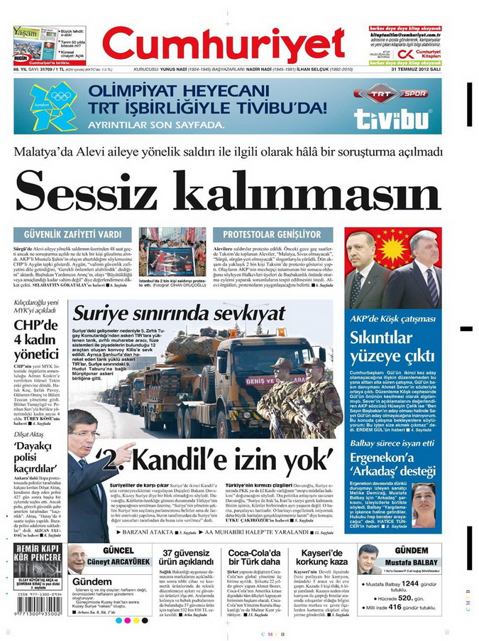 Gazete Manşetleri - 31 Temmuz 2012