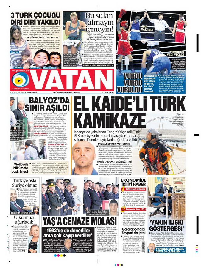 Gazete Manşetleri - 4 Ağustos 2012