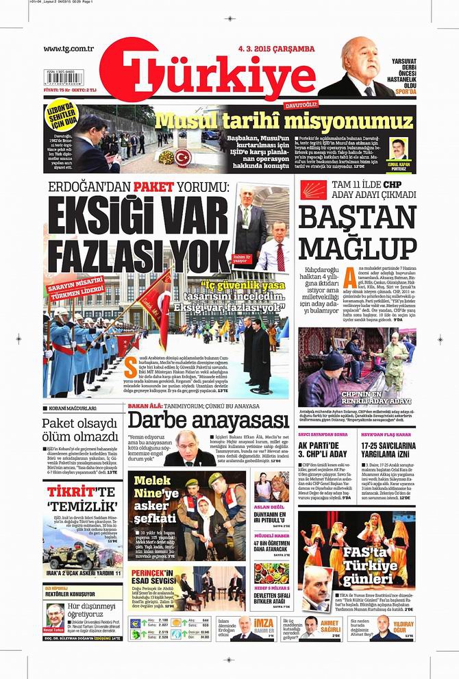 Gazete Manşetleri - 4 Mart 2015