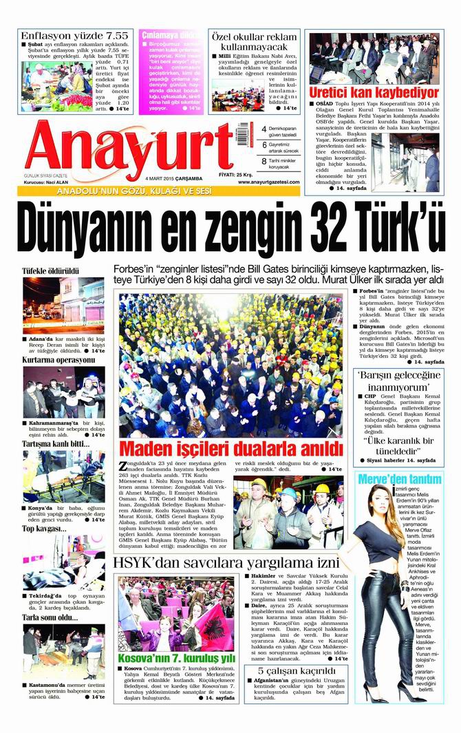 Gazete Manşetleri - 4 Mart 2015