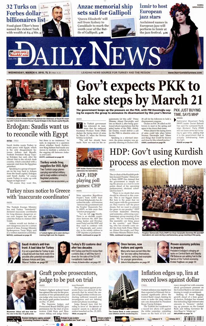 Gazete Manşetleri - 4 Mart 2015