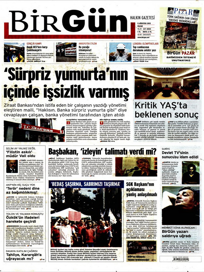 Gazete Manşetleri - 5 Ağustos 2012 Pazar