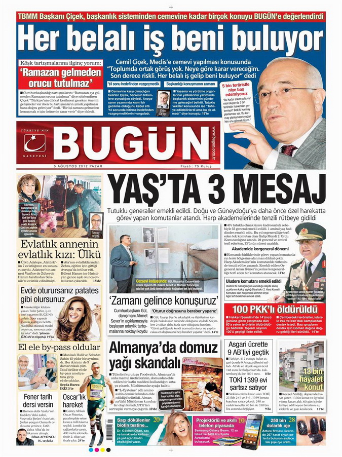 Gazete Manşetleri - 5 Ağustos 2012 Pazar