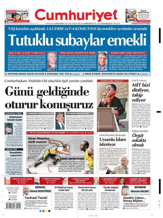 Gazete Manşetleri - 5 Ağustos 2012 Pazar