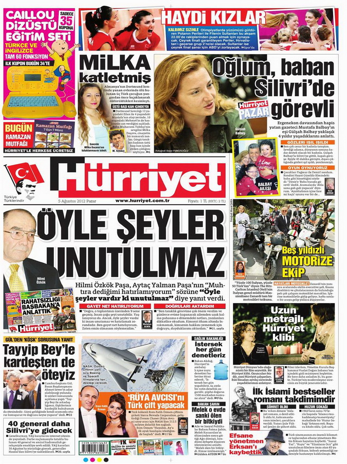 Gazete Manşetleri - 5 Ağustos 2012 Pazar