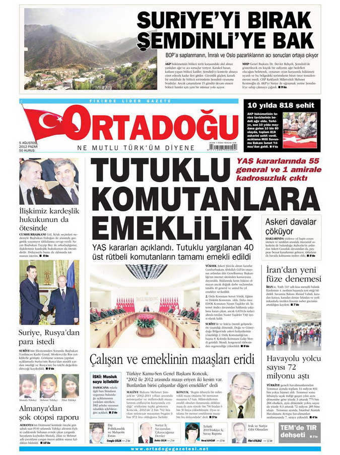 Gazete Manşetleri - 5 Ağustos 2012 Pazar