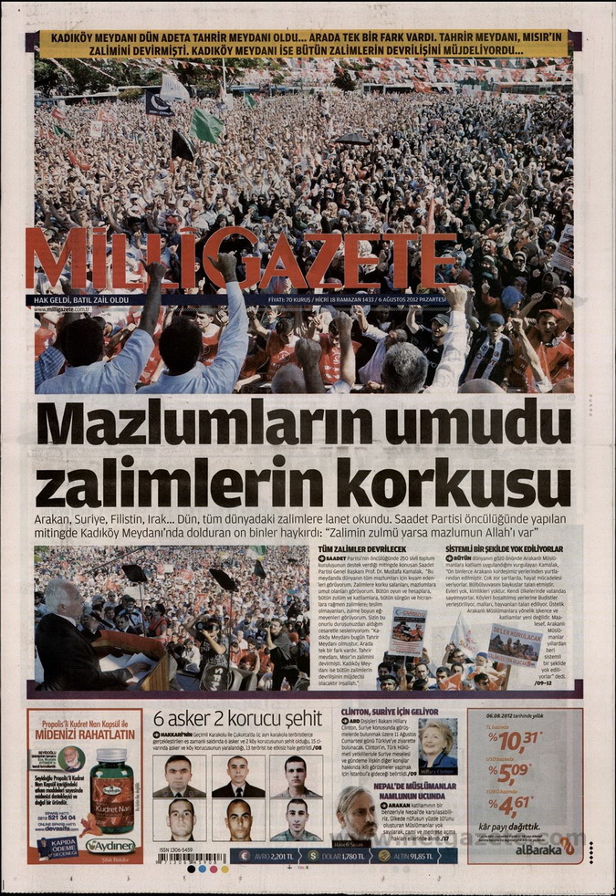 Gazete Manşetleri - 6 Ağustos 2012 Pazartesi