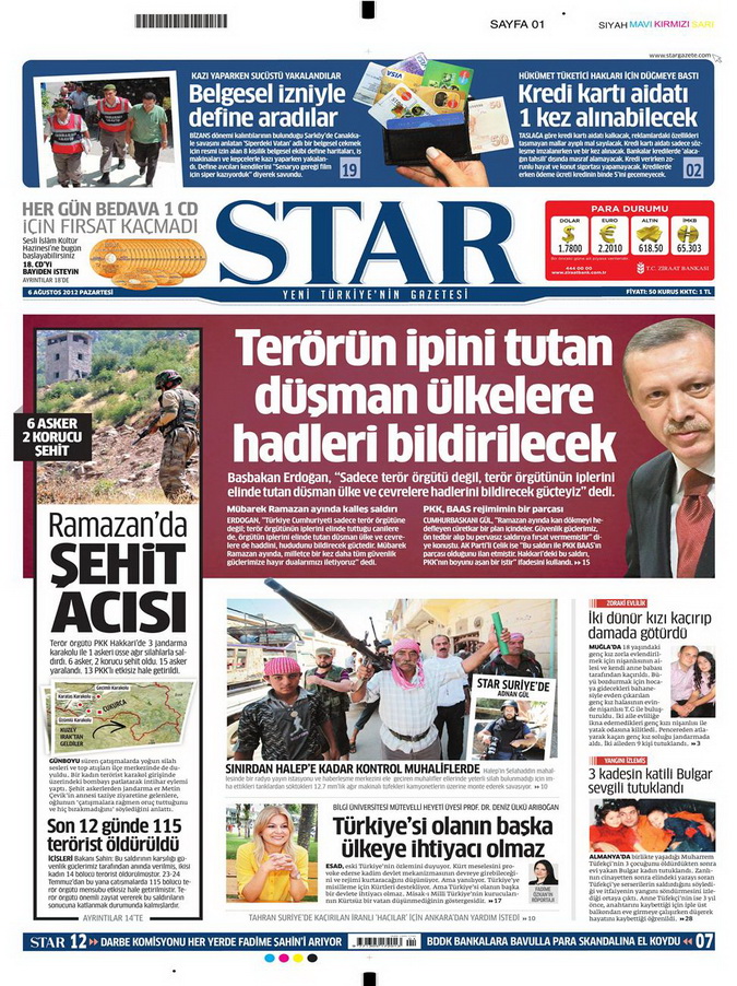 Gazete Manşetleri - 6 Ağustos 2012 Pazartesi