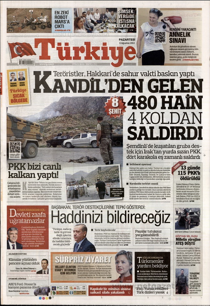 Gazete Manşetleri - 6 Ağustos 2012 Pazartesi
