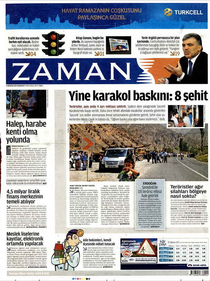 Gazete Manşetleri - 6 Ağustos 2012 Pazartesi
