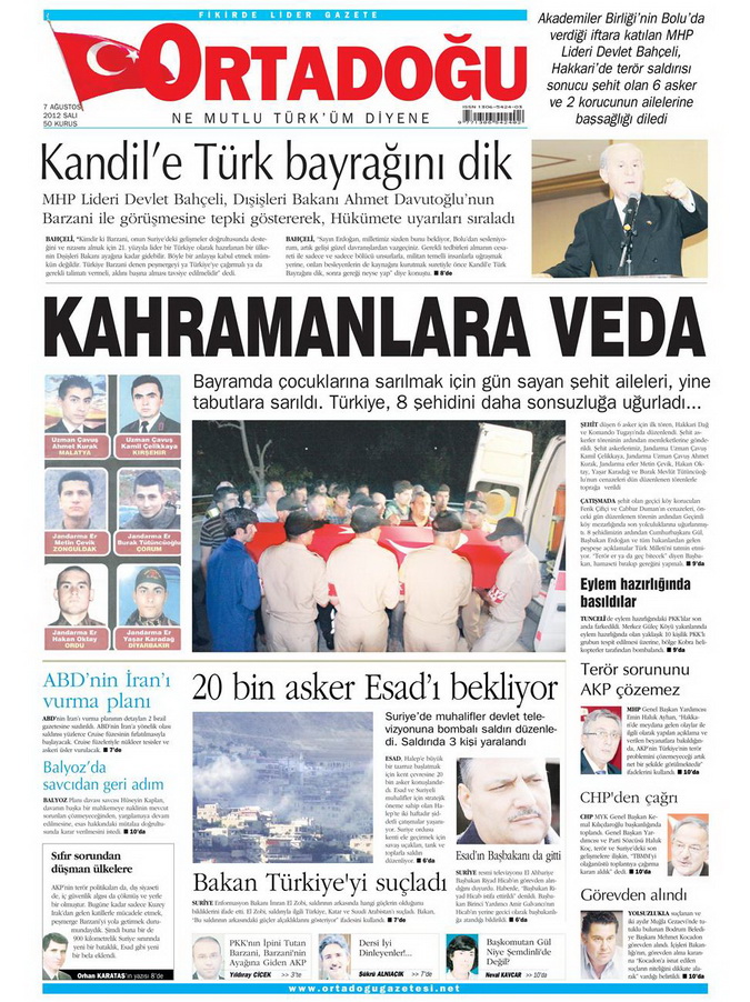Gazete Manşetleri - 7 Ağustos 2012 Salı