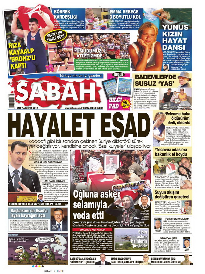 Gazete Manşetleri - 7 Ağustos 2012 Salı