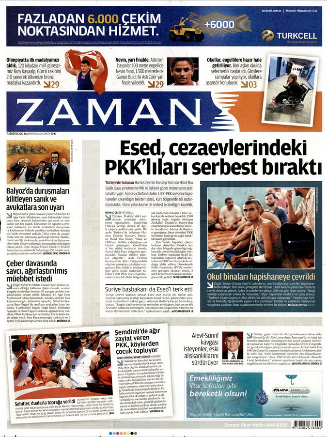 Gazete Manşetleri - 7 Ağustos 2012 Salı