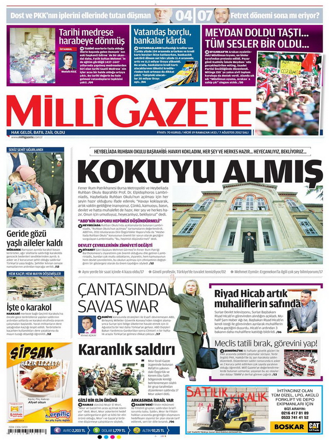 Gazete Manşetleri - 7 Ağustos 2012 Salı