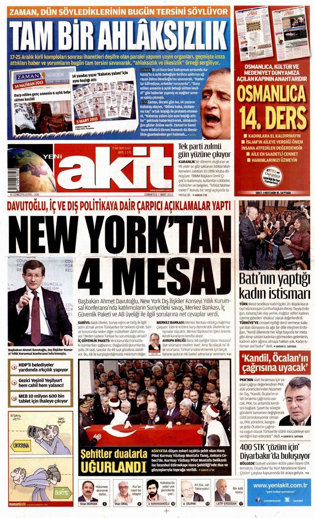 Gazete Manşetleri - 7 Mart 2015