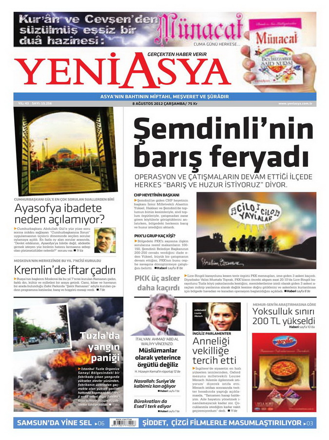 Gazete Manşetleri - 8 Ağustos 2012 Çarşamba