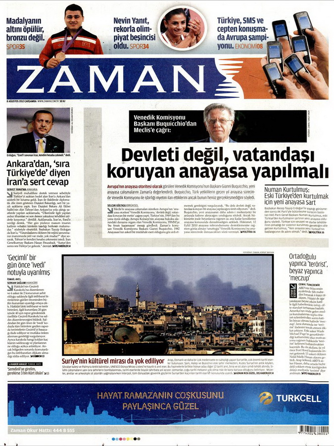 Gazete Manşetleri - 8 Ağustos 2012 Çarşamba